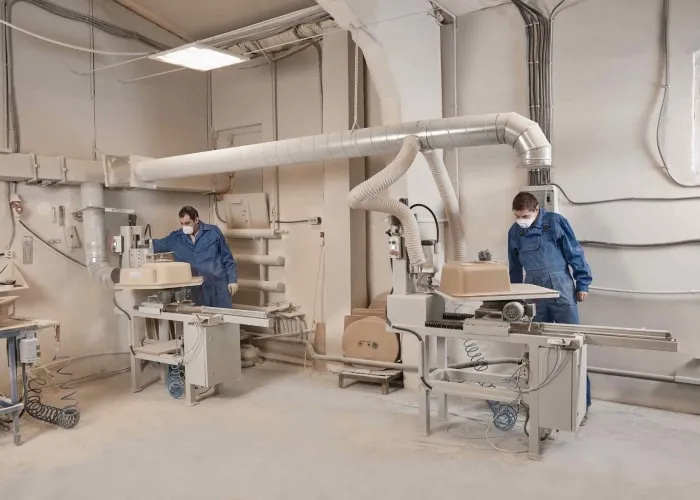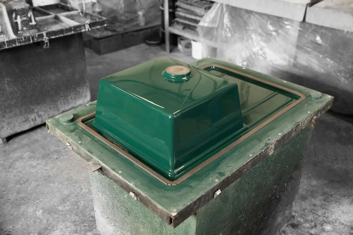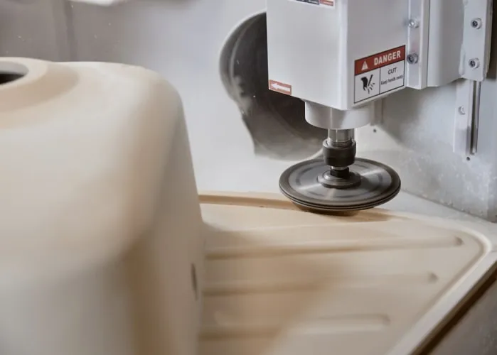 После полимеризации изделия отправляются в цех механической обработки. После фрезеровки кромки и сверления технологических отверстий, изделия поступают на участок комплектации и упаковки.