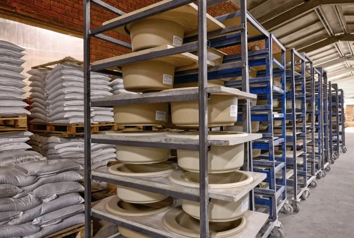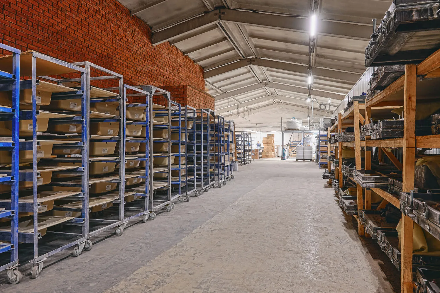 Стеллажи с полуфабрикатами отправляются на пост-отверждение в печь для окончательной полимеризации.